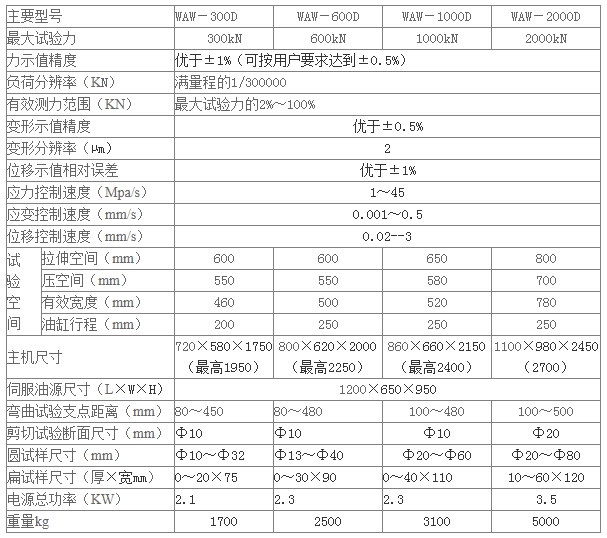 WAW-2000E微機控制電液伺服萬能試...